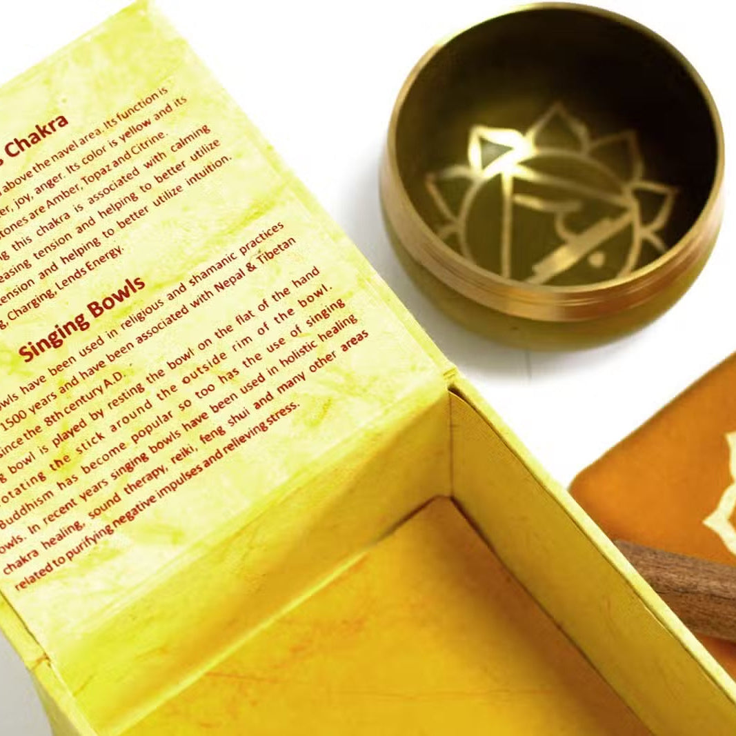 8cm Authentic Healing Chakra Brass Singing Bowl Set - Solar Plexus Chakra