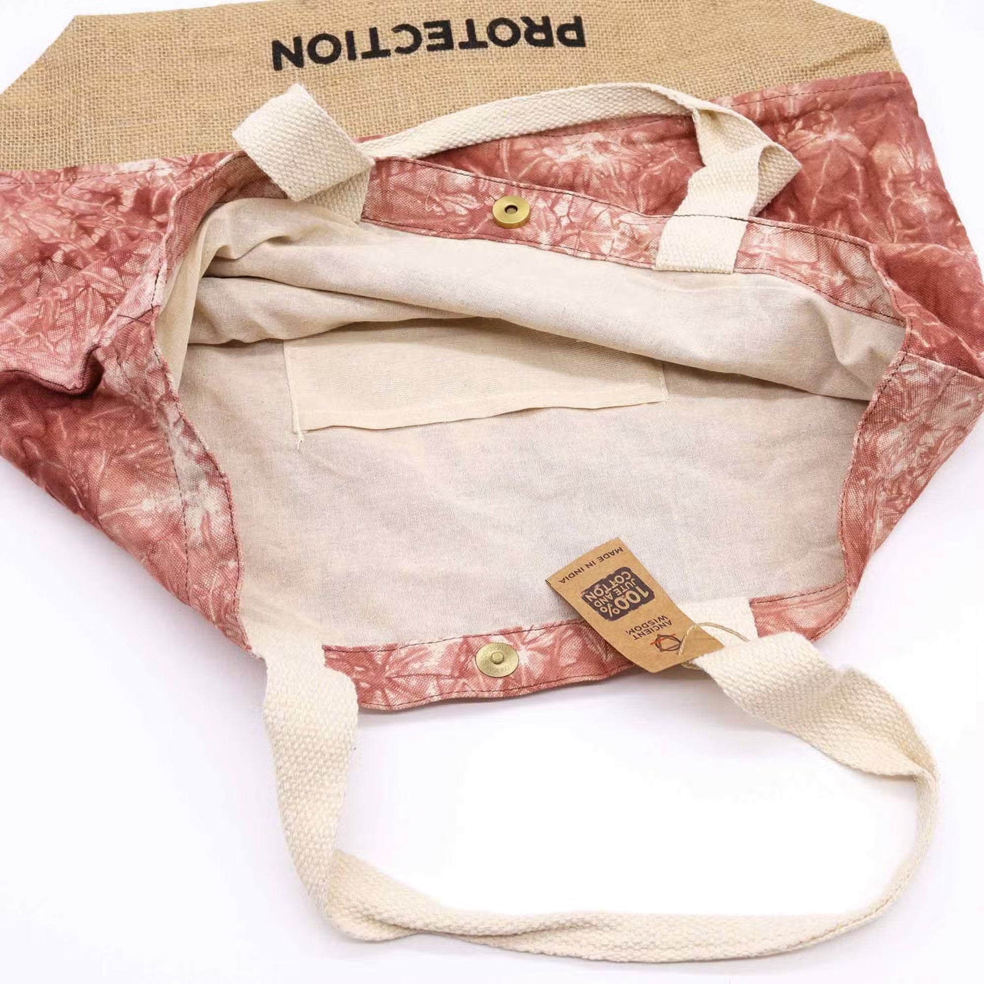 Stonewash Terracotta All Natural Eco-Friendly Jute and Cotton Tote Bag - Hamsa / Protection