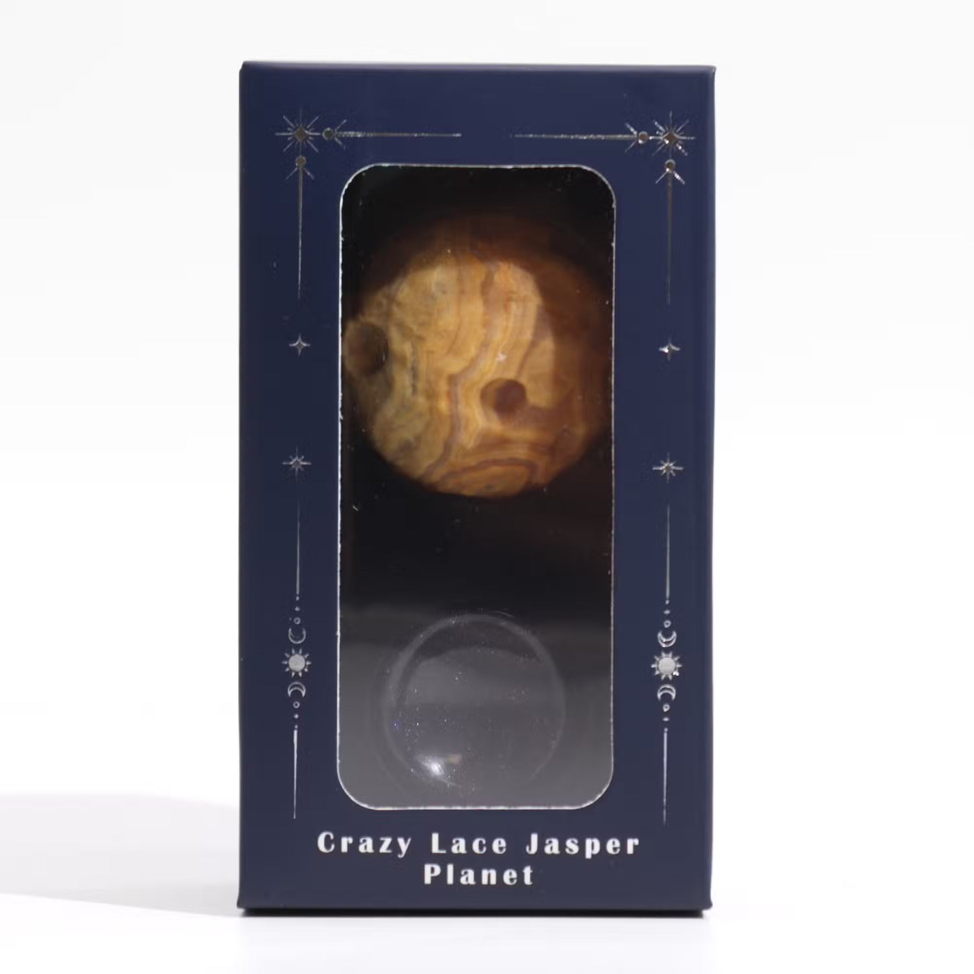 Crazy Lace Jasper Gemstone Planet and Goldstone Stand - Mercury