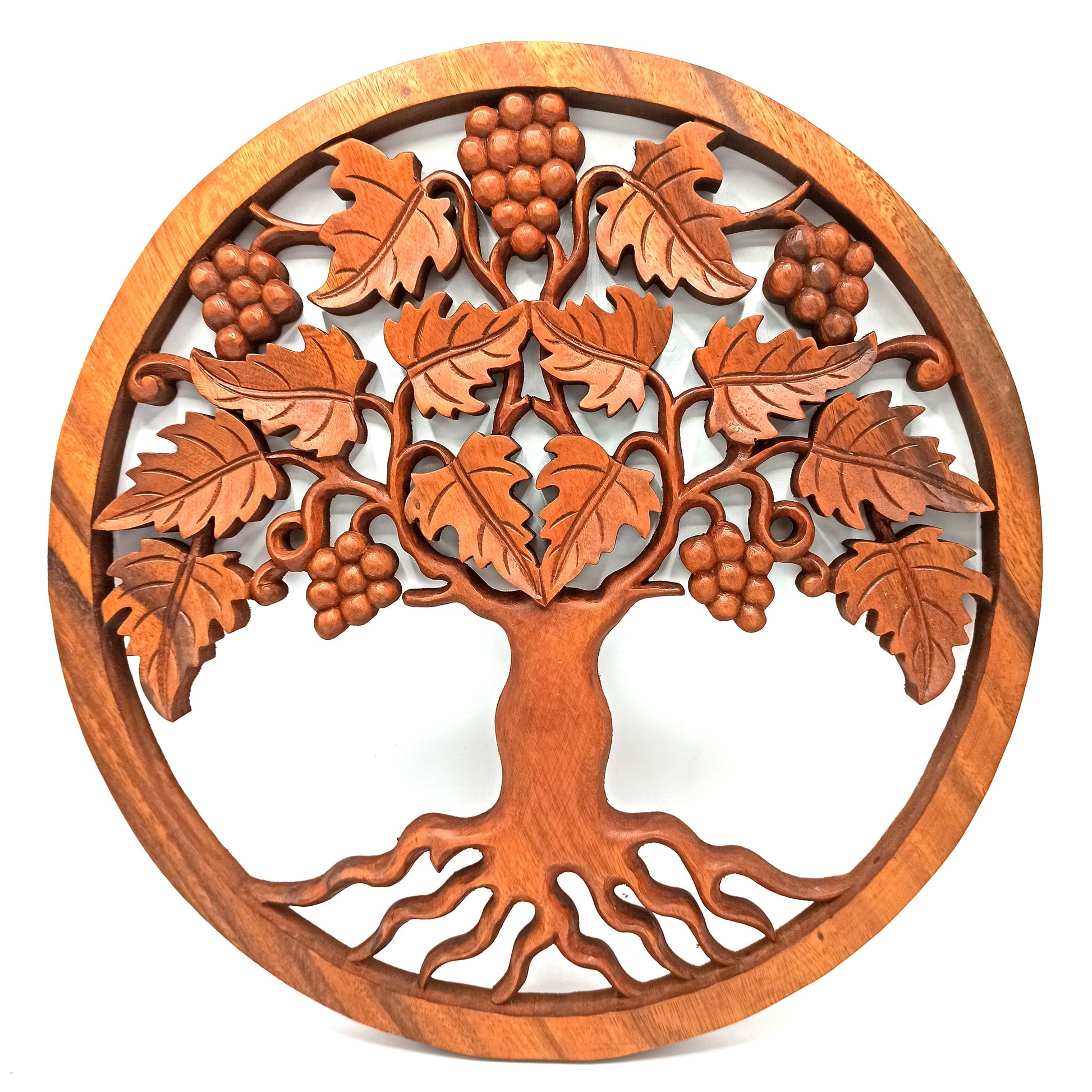 Tree of Life / Grapes - Handmade Decorative Suar Wooden Plaque - 40cm