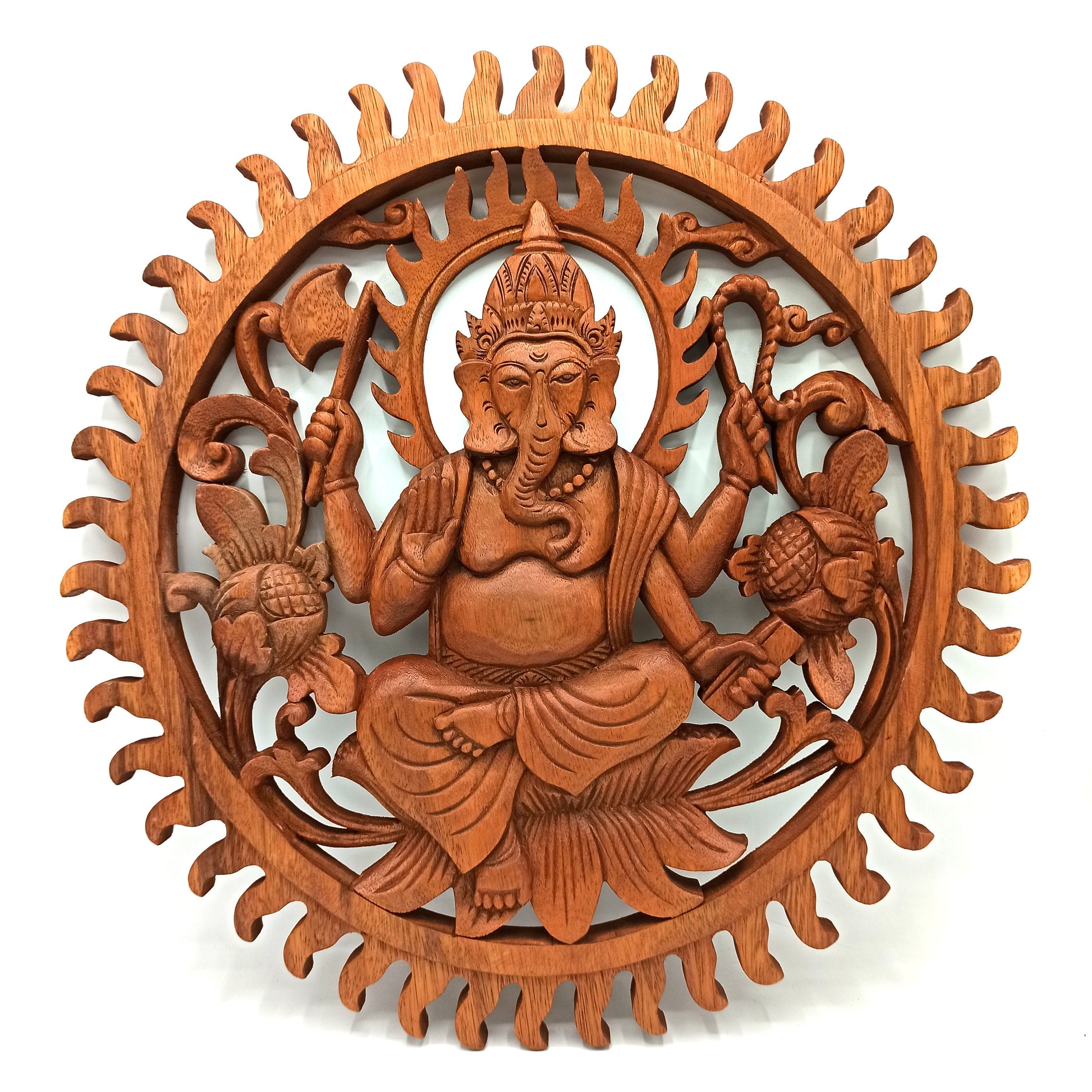 Ganesh - Handmade Decorative Suar Wooden Plaque - 40cm