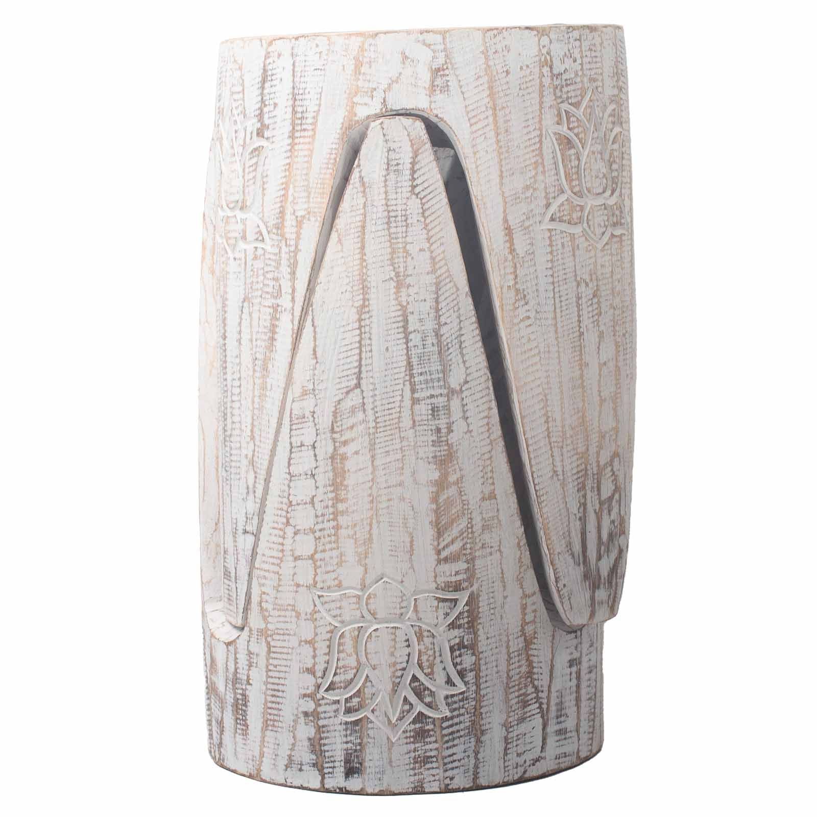 Set of 2 x Handmade Albasia Wooden Interlocking Tribal Tables / Stools - Whitewash