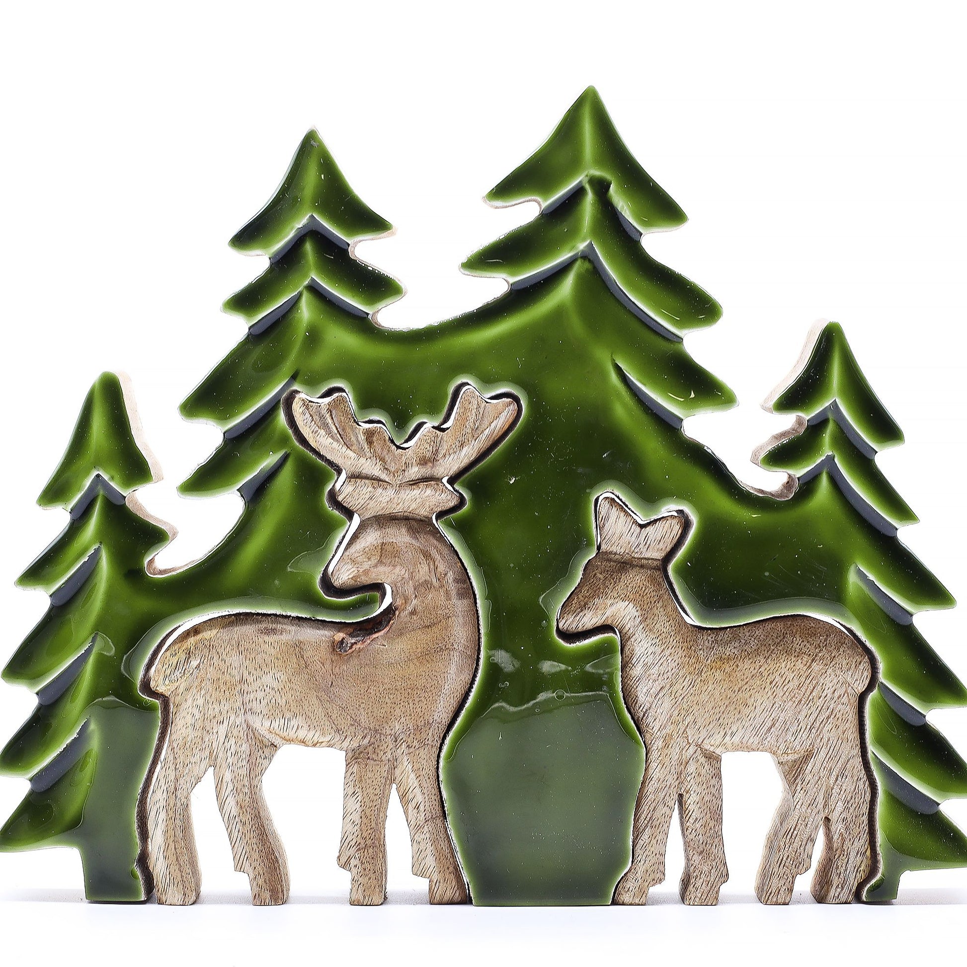 Handcrafted Enamel Wooden 3D Tree Decoration - 2 Deers in the Forest