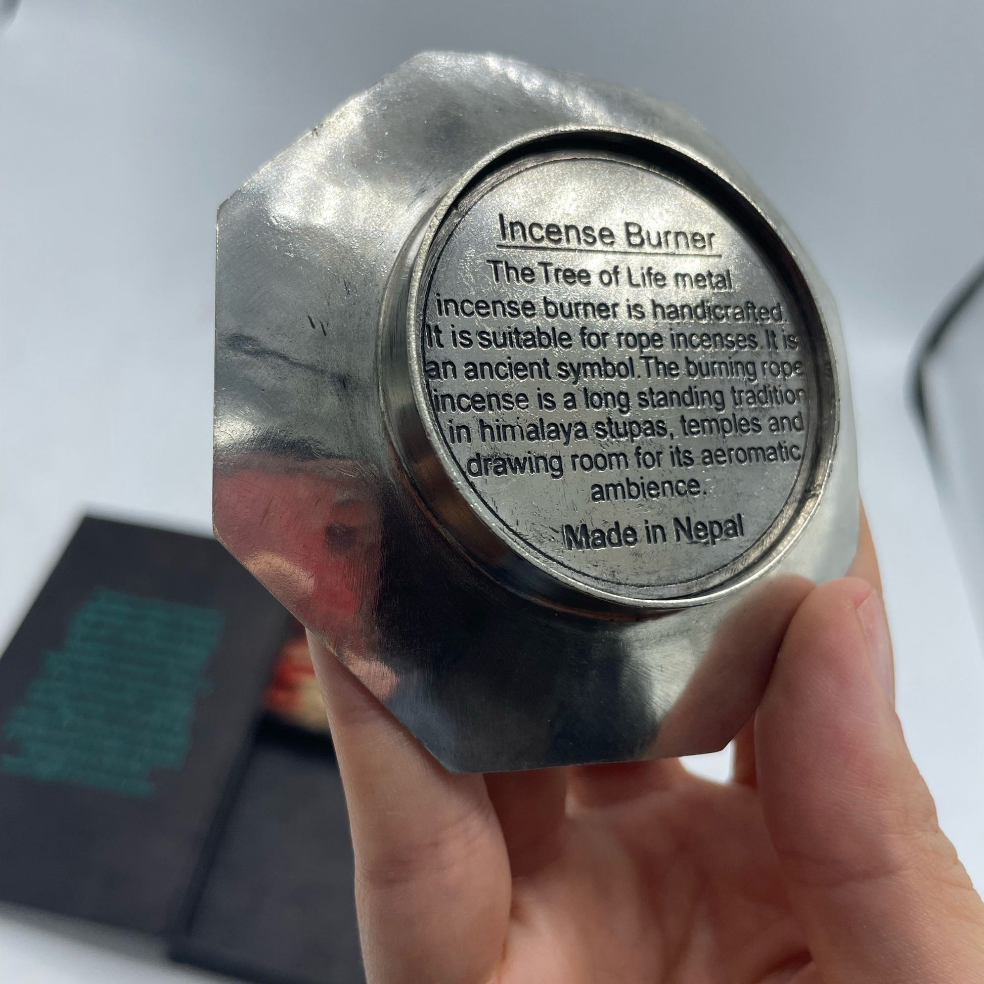 The silver-plated holder, adorned with the Tree of Life, is not only a functional piece to burn the incense safely but also a decorative addition to your space.