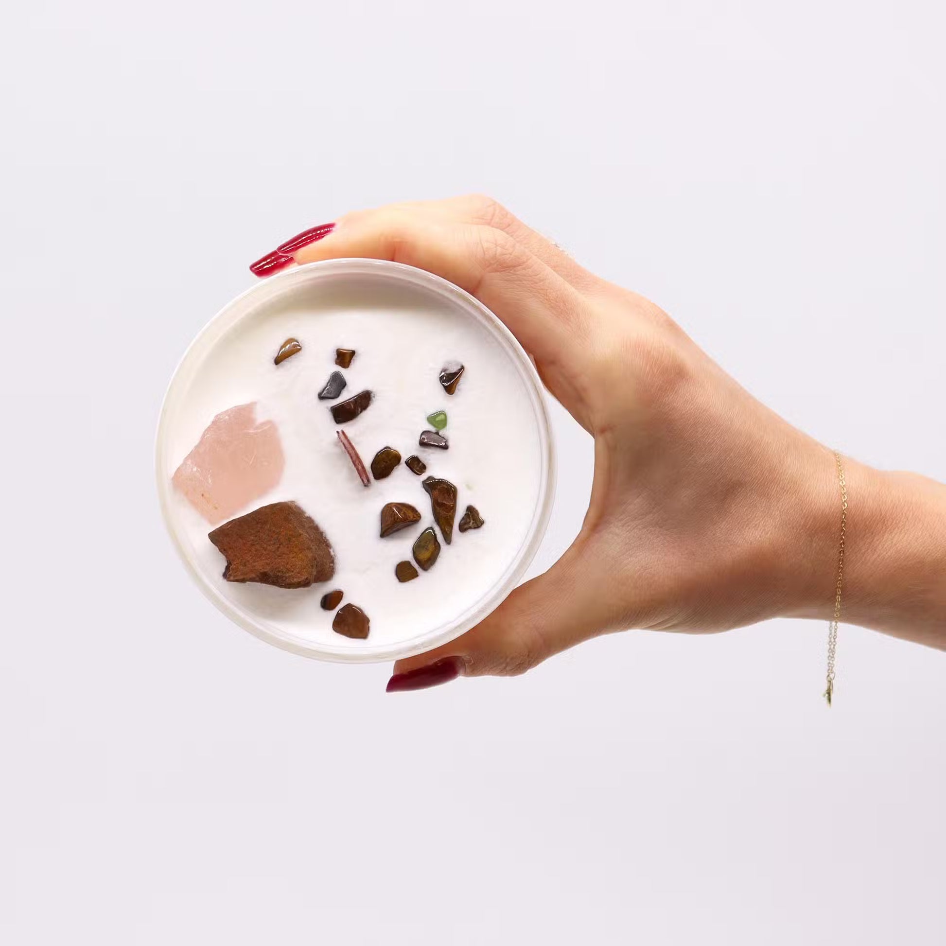 A harmonious fusion of light and energy with this Scented Chakra Crystal and Eco-Friendly Soy Wax Candle.